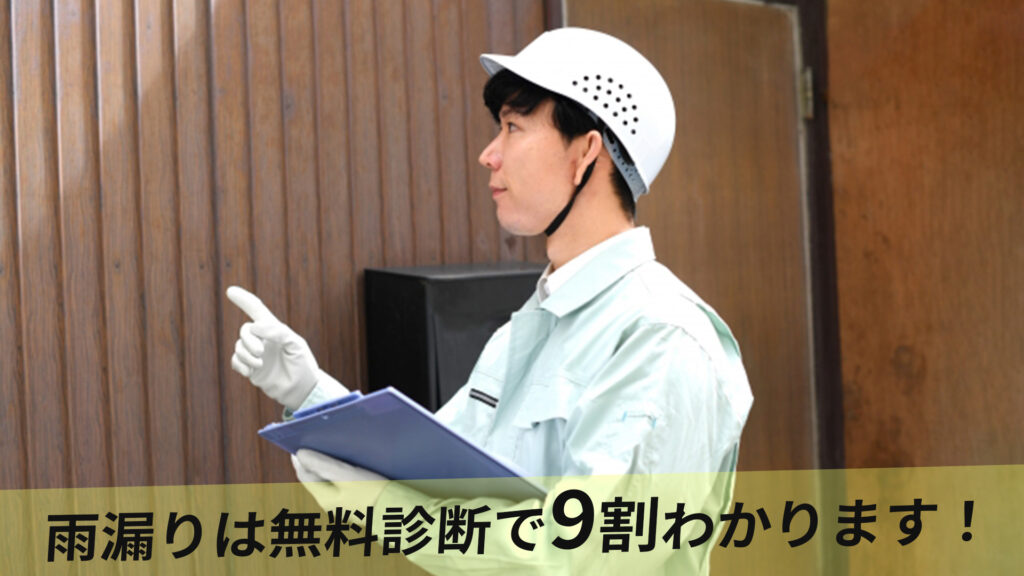 専門の診断士がヒアリングや目視による無料診断から原因を特定します。無料診断でおよそ9割の原因を突き止められますが、場合によっては有料の散水試験や赤外線カメラによる調査で更に細かく調査を行い正確な原因特定を行います。