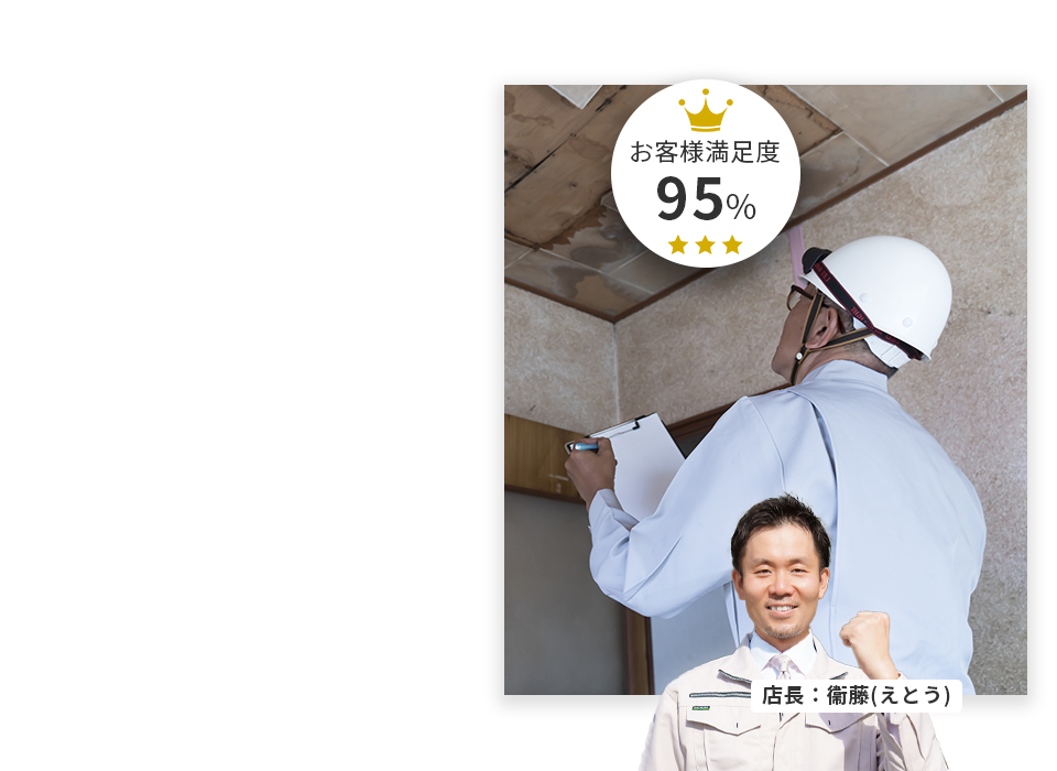 ショクチョクには経験豊富な雨漏り専門職人が多数在籍しています。雨漏り鑑定士など、各種資格を持つ専門家や多くの現場で雨漏りを食い止めてきた職人が適切な調査・ご提案をサポートしています。