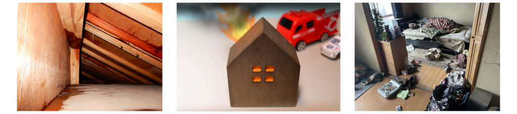 侵入した雨水は、基本的に壁の中など見えない部分をつたってきます。壁の中には電気配線があり、もし電気配線が雨水に濡れてショートすれば漏電火災を発生させてしまう危険性があります。