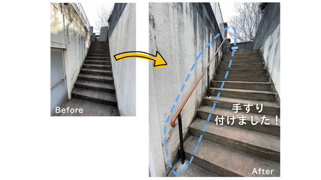 掴みやすいように縦位置の手すりを新たに設置いたしました。