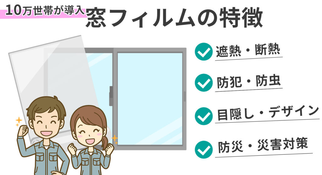 窓フィルムで解決できる窓のお困りごとはたくさんあります。災害対策、紫外線、防犯、暑さ寒さ、抗菌などなど。フィルムを貼るだけでびっくりするほど快適な生活になります!